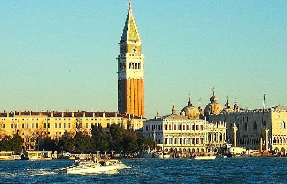 正面に見えるのはヴェネチアを代表する大鐘楼である。