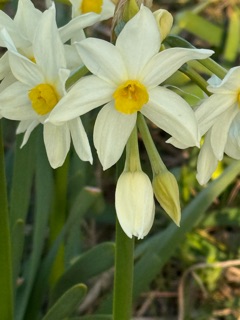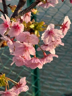 道中の土手に 河津桜と水仙が綺麗に咲いてます