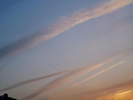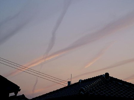 真っ黒な雨雲の間からの夕焼けが真っ赤でした。